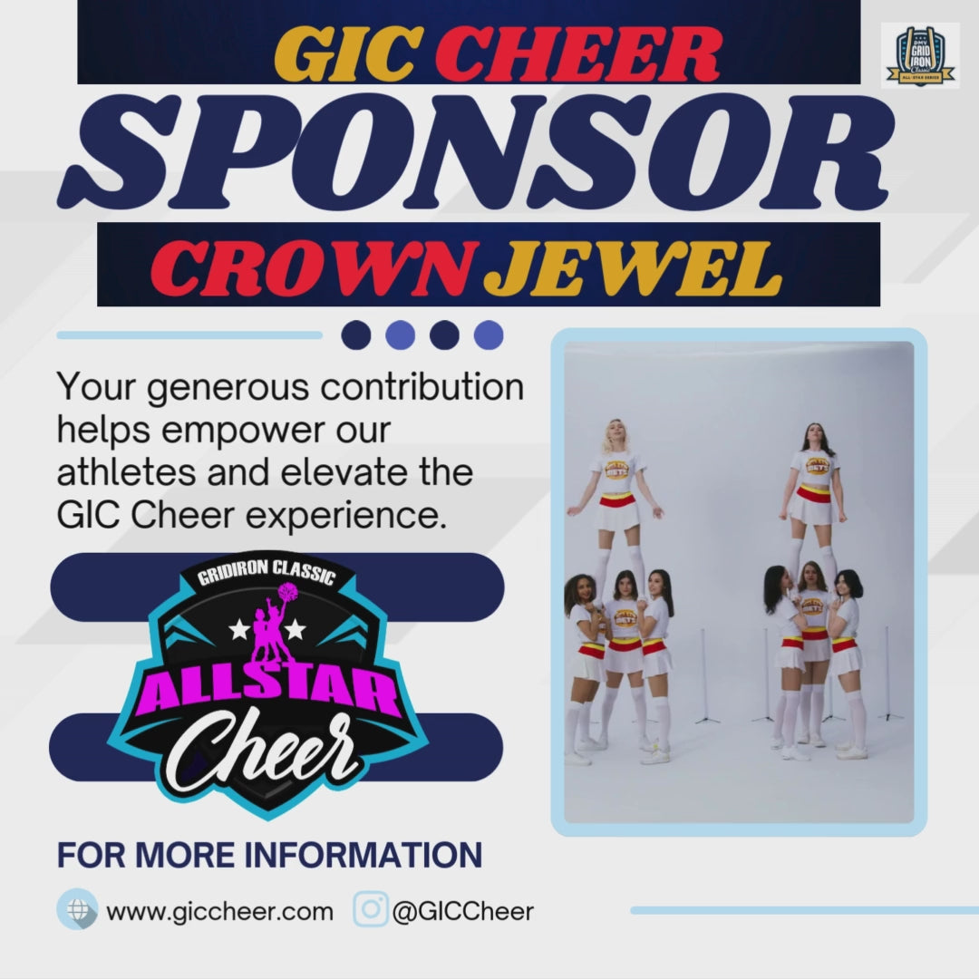The Crown Jewel Tier is the pinnacle of partnership within the GIC Cheer Program and the GIC All-Star Weekend. With a distinguished contribution of $25,000, Crown Jewel Sponsors make an extraordinary impact—shaping the athlete experience, elevating program quality, and leaving a lasting legacy on the future of youth cheer across the nation.