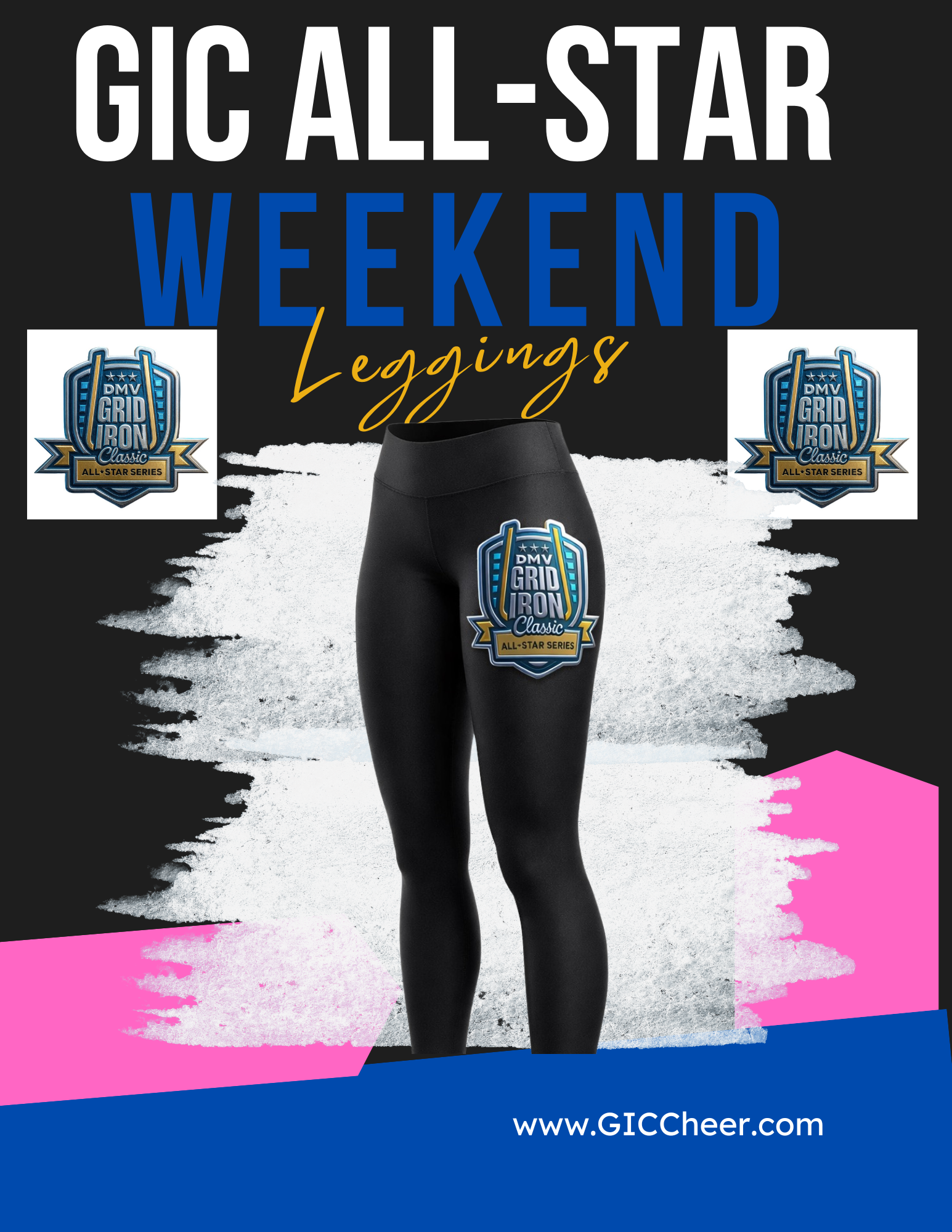 Elevate your game-day style and show off your team spirit with the GIC Leggings Collection! Designed for comfort, performance, and standout style, these leggings are perfect for athletes, cheerleaders, and fans alike. Each pair is crafted with high-quality, stretchy fabric that moves with you, whether you’re practicing, performing, or cheering from the sidelines. With bold logo placements and sleek designs, these leggings let you represent GIC Cheer and GIC All-Star Weekend wherever you go. Pair them with your favorite gear or wear them solo for a confident, athletic look.